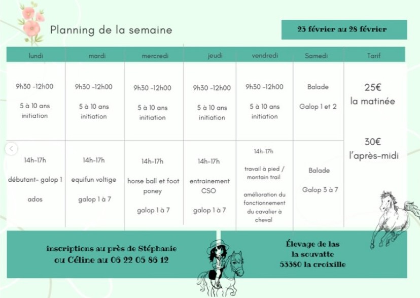 Planning de la seconde semaine de vacances.